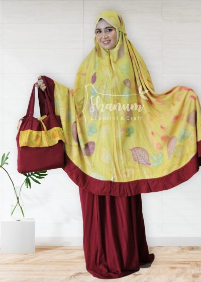 Detail Produk Mukena Ecoprint Merah Hati Kuning