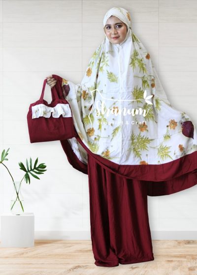 Mukena Ecoprint Merah Marun 01
