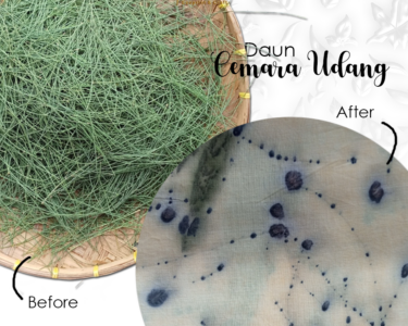 Daun cemara udang yang sering kita temui di jalanan juga bisa dijadikan motif ecoprint lho! selengkapnya