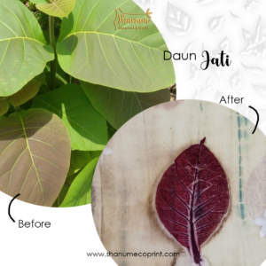 Pohon jati/Tectona grandis L.F. selain menghasilkan kayu dengan mutu yang tinggi serta daunnya yang sering dijadikan sebagai pembungkus nasi. Daun jati ini juga bisa dijadikan motif ecoprint juga lho.